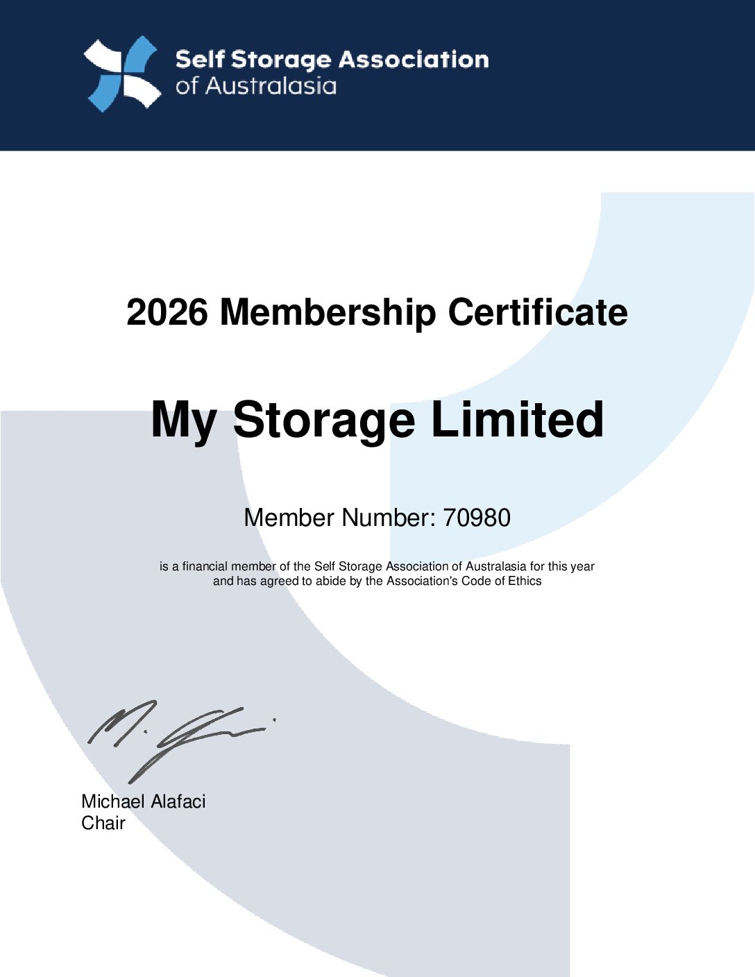 We are proud to be members of the Self Storage Association of Australasia (SSAA).